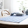 Ett enkelt sätt att skapa nya utryck till ditt dukade är att addera en löpare på ditt bord, det skapar inte bara en ombonad och centrerad stämning. Utan gör sig lika fint som det är praktiskt att duka med rakt över ett bord, för att markera ett kuvert för två personer. Ett alternativ till tablett men med mer känsla. Blå/Vit.