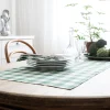 Ett enkelt sätt att skapa nya utryck till ditt dukade är att addera en löpare på ditt bord, det skapar inte bara en ombonad och centrerad stämning. Utan gör sig lika fint som det är praktiskt att duka med rakt över ett bord, för att markera ett kuvert för två personer. Ett alternativ till tablett men med mer känsla. Grön/Vit.