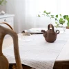 Ett enkelt sätt att skapa nya utryck till ditt dukade är att addera en löpare på ditt bord, det skapar inte bara en ombonad och centrerad stämning. Utan gör sig lika fint som det är praktiskt att duka med rakt över ett bord, för att markera ett kuvert för två personer. Ett alternativ till tablett men med mer känsla. Brun/Vit.