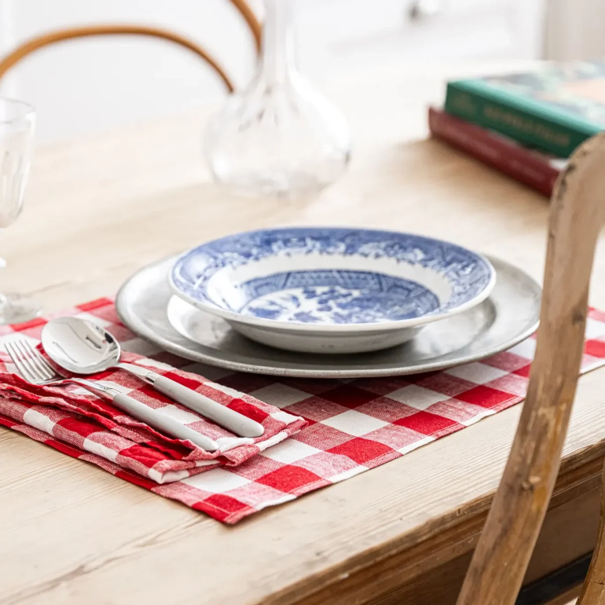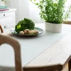 Ett enkelt sätt att skapa nya utryck till ditt dukade är att addera en löpare på ditt bord, det skapar inte bara en ombonad och centrerad stämning. Utan gör sig lika fint som det är praktiskt att duka med rakt över ett bord, för att markera ett kuvert för två personer. Ett alternativ till tablett men med mer känsla. Grön/Vit.